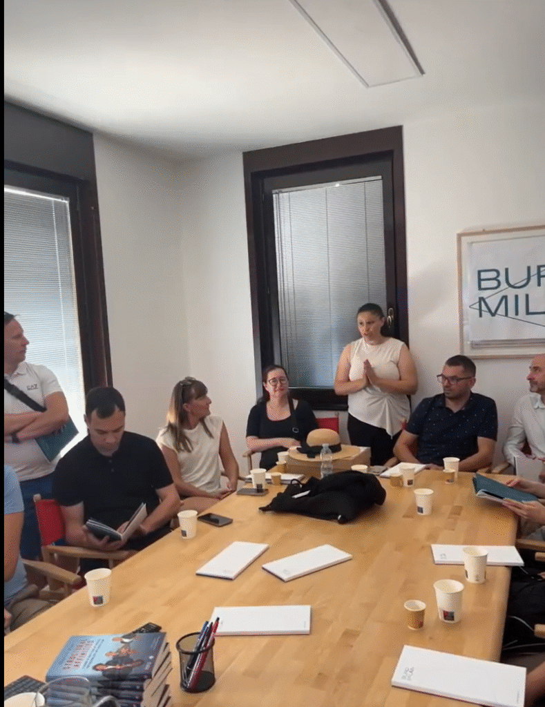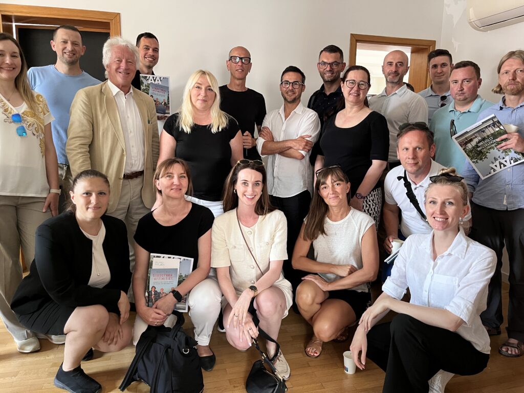 Do TAM natomiast trafiliśmy dzięki Federice z teamu ArchiTour, która regularnie wbzogaca nasze wyjazdy swoją ogromną wiedzą. Federica wygłosiła krótką mowę, w której wróciła do czasu swojej pracy dla TAM. To od nich wyniosła wartości, które dziś kształtują jej podejście do projektowania – przekonanie, że architektura ma przede wszystkim służyć ludziom, a nie jedynie tworzyć spektakularne formy.